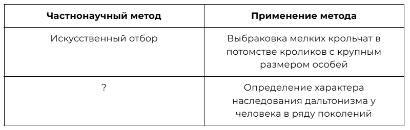 Рассмотрите таблицу «Методы биологических исследований». Запишите в ответе пропущенный термин, обозначенный в таблице вопросительным знаком.
