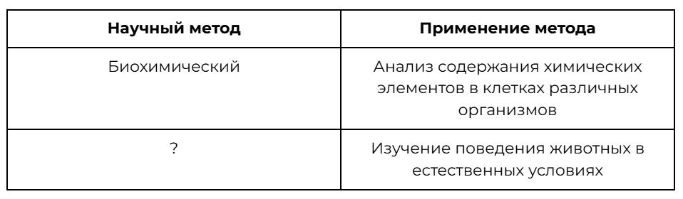 Рассмотрите таблицу «Методы биологических исследований». Запишите в ответе пропущенный термин, обозначенный в таблице вопросительным знаком.