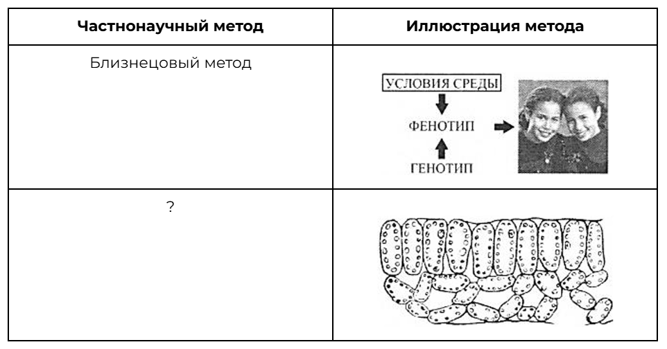 Рассмотрите таблицу «Методы биологических исследований». Запишите в ответе пропущенный термин, обозначенный в таблице вопросительным знаком.