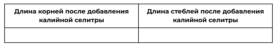 Экспериментатор проращивал семена проса в чашке Петри с добавлением дистиллированной воды. Как изменится длина корней и стеблей проростков проса, если дистиллированную воду заменить на раствор, содержащий калийную селитру?