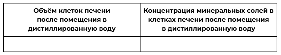 Исследователь поместил кусочек печени крысы на сутки в дистиллированную воду. Как при этом изменятся объем клеток печени и концентрация минеральных солей в них?