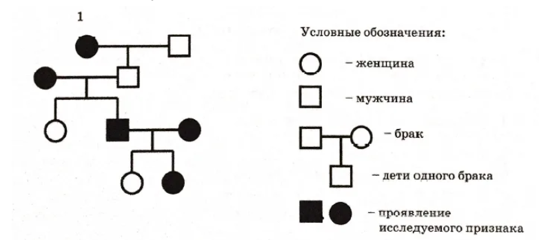 По изображённой на рисунке родословной определите, сколько типов гамет образуется у родителя, обозначенного на схеме цифрой 1. В ответе запишите только соответствующее число.
