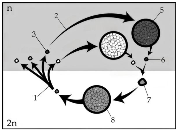Каким номером на схеме обозначен взрослый диплоидный организм?