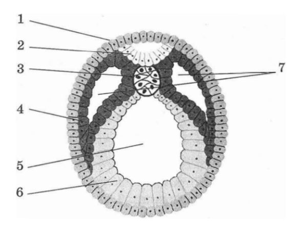Каким номером на рисунке обозначена структура, из которой в дальнейшем образуется нервная система животного?