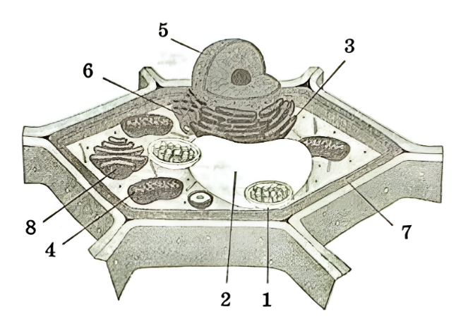 Каким номером на схеме обозначена структура клетки, состоящая в основном из целлюлозы?