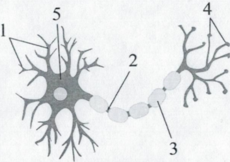 Установите соответствие между характеристиками и видами отростков нейрона, обозначенными на рисунке выше цифрами 1 и 2: к каждой позиции, данной в первом столбце, подберите соответствующую позицию из второго столбца.