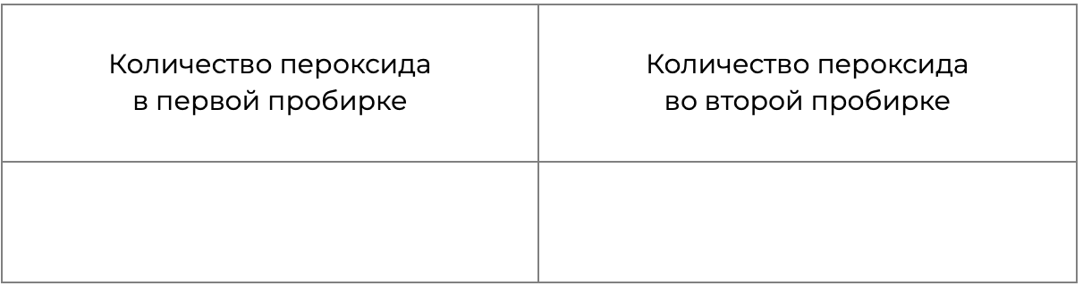 а во вторую – кусочек сырого мяса. В каждую из пробирок он налил одинаковое количество пероксида водорода. Как при этом изменилось количество пероксида в первой и во второй пробирках? Влияние света
