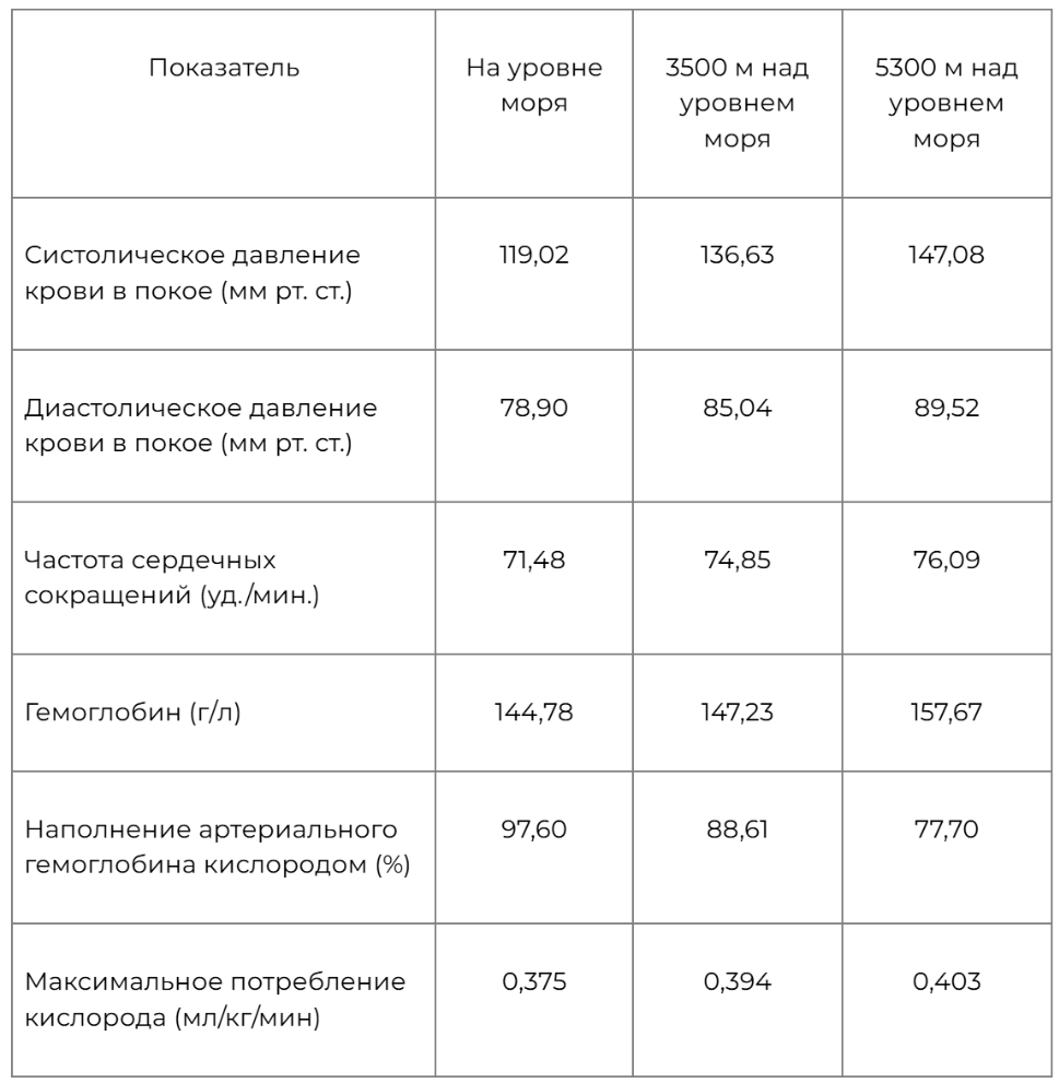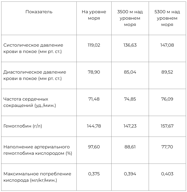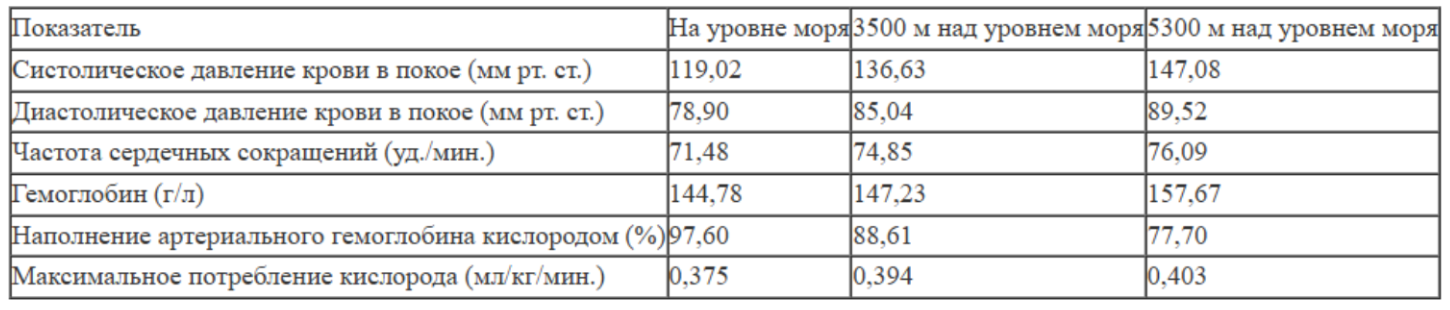 Проанализируйте таблицу «Средние физиологические показатели крови и сердечно-сосудистой системы у группы туристов, восходящих на Эверест».