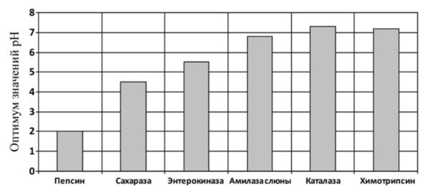 Проанализируйте диаграмму «Оптимумы значений pH для некоторых ферментов».