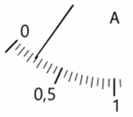 Определите показания амперметра (см. рисунок) с учётом абсолютной погрешности измерений, если абсолютная погрешность прямого измерения силы тока равна цене деления амперметра.