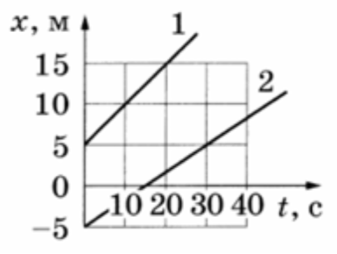 На рисунке приведены графики зависимости координат х двух тел, прямолинейно движущихся по оси Ох, от времени t.
