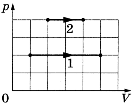 На рисунке показаны два процесса, проведенных с одним и тем же количеством газообразного неона (р - давление неона; V - его объем).