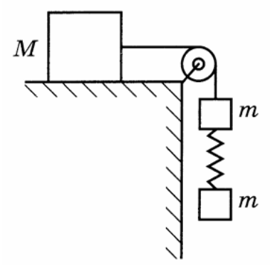 Груз массой М = 800 г соединён невесомой и нерастяжимой нитью, перекинутой через гладкий невесомый блок, с бруском массой m = 400 г. К этому бруску на легкой пружине жесткостью k = 80 Н/м подвешен второй такой же брусок. Длина нерастянутой пружины l = 10 см, коэффициент трения груза о поверхность стола = 0,2. Определите длину пружины при движении брусков, считая, что при этом движении она постоянна. Сделайте рисунок с указанием сил, действующих на груз и бруски. Обоснуйте применимость используемых законов к решению задачи.