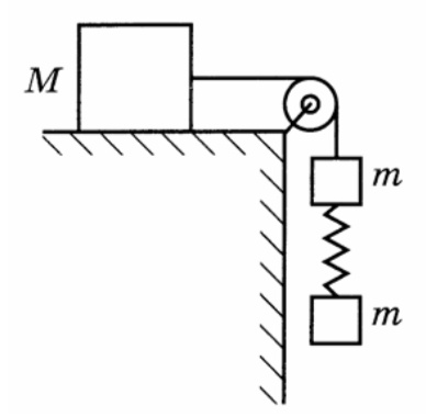 Груз массой М = 800 г соединён невесомой и нерастяжимой нитью, перекинутой через гладкий невесомый блок, с бруском массой m = 400 г. К этому бруску на лёгкой пружине подвешен второй такой же брусок. Длина нерастянутой пружины l = 10 см, коэффициент трения груза о поверхность стола = 0,2. Длина пружины при движении брусков остается постоянной и равна L = 14 см. Определите жесткость пружины. Сделайте рисунок с указанием сил, действующих на груз и бруски. Обоснуйте применимость используемых законов к решению задачи.