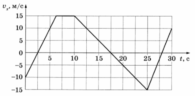 На рисунке приведён график зависимости проекции vx скорости тела от времени t. Определите проекцию ax ускорения этого тела в момент времени 26 с. Ответ дайте в м/с2.