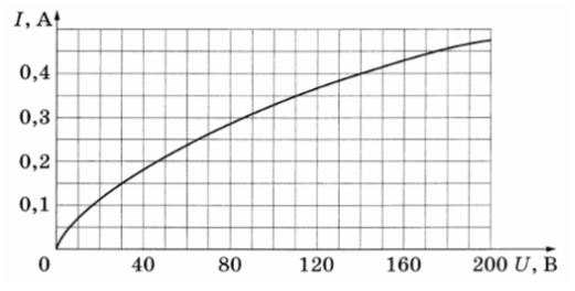 На рисунке изображена зависимость силы тока в лампе накаливания от приложенного к ней напряжения. Найдите мощность, выделяющуюся на резисторе, включенном последовательно с лампой в сеть с напряжением 120 В, если сила тока в цепи равна 0,3 А.