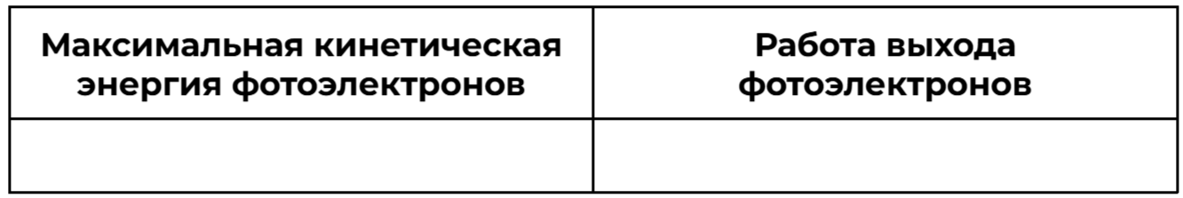 В лабораторной работе ученик изучает зависимость максимальной кинетической энергии фотоэлектронов, вылетающих с фотокатода, от частоты падающего света. В опытах наблюдается явление фотоэффекта. Частоту падающего света в опыте немного увеличивают. Как при этом изменяются максимальная кинетическая энергия фотоэлектронов и работа выхода фотоэлектронов из металла фотокатода?