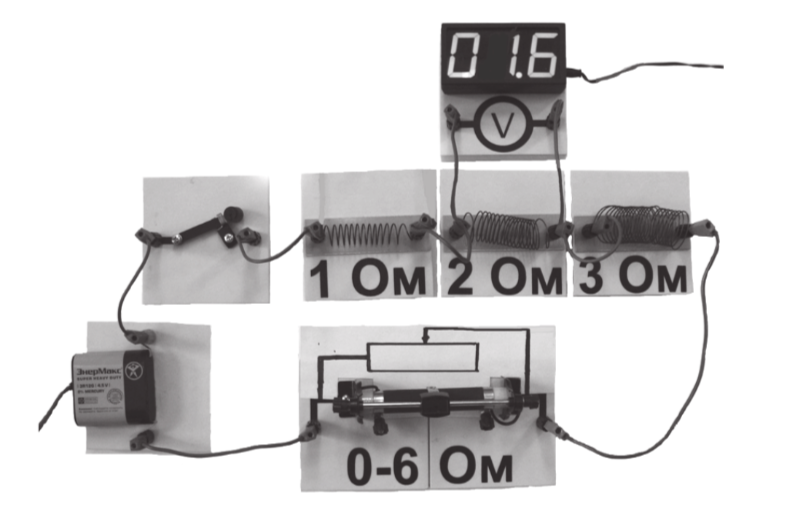 На фотографии изображена электрическая цепь. Показания вольтметра даны в вольтах. Какова сила тока, протекающего через источник? Вольтметр считать идеальным. Ответ дайте в Амперах.