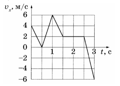 На рисунке приведён график зависимости проекции vx скорости тела от времени t. Какова проекция sx перемещения этого тела за время от момента t1 = 0,5 с до момент t2 = 1,5 с? Ответ дайте в метрах и запишите с учётом знака проекции.