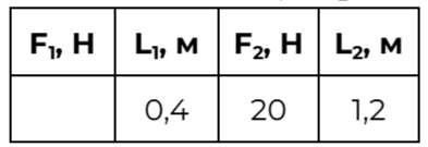 Ученик выполнял лабораторную работу по исследованию условий равновесия рычага под действием двух сил: F1 и F2, плечи которых равны соответственно L1 и L2. Он внес результаты измерений в таблицу.