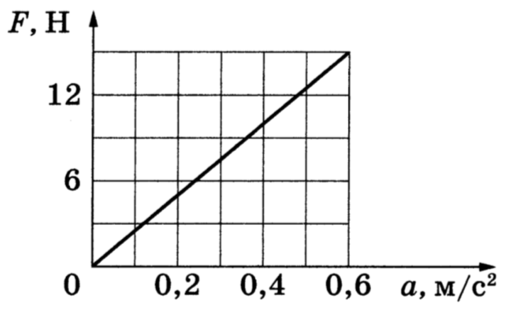 На графике приведена зависимость модуля горизонтальной силы F, приложенной к бруску, скользящему без трения по горизонтальной поверхности, от модуля его ускорения а. Систему отсчета считать инерциальной. Чему равна масса бруска? Ответ дайте в кг.