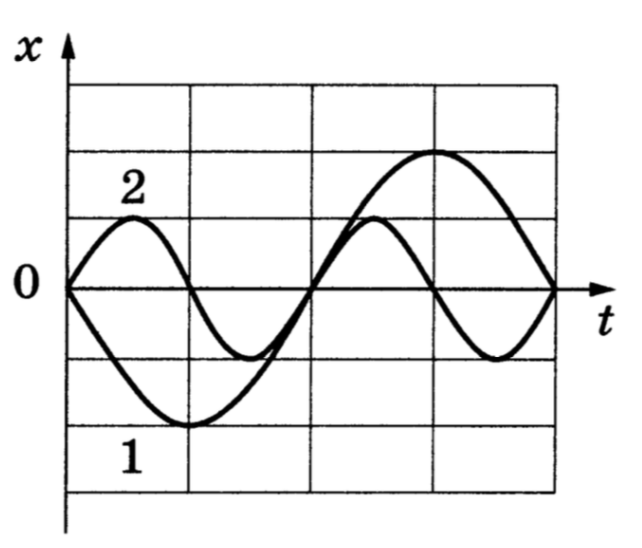 На рисунке представлены графики зависимости координаты х от времени t для двух тел. Чему равно отношение частот колебаний этих тел ?