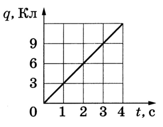 По проводнику течет постоянный электрический ток. Заряд, прошедший по проводнику, растет с течением времени согласно представленному графику (см. рисунок). За какое время (в с) по проводнику протекает заряд 45 Кл?
