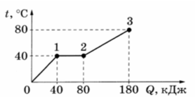 Для того чтобы увеличить температуру этого образца вещества в жидком состоянии на 40°С, ему надо передать количество теплоты, равное 180 кДж.
