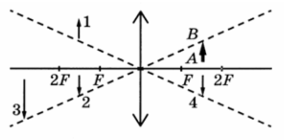 Какому из предметов 1-4 соответствует изображение AB в тонкой собирающей линзе с фокусным расстоянием F?