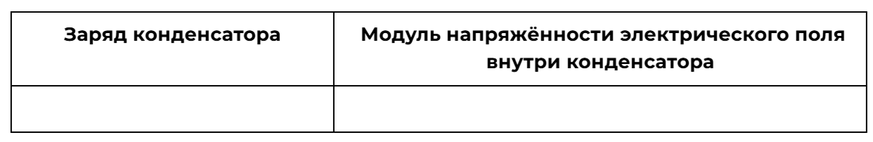 Конденсатор подсоединили к источнику тока, и он стал заряжаться. Как меняются в процессе зарядки конденсатора заряд конденсатора и модуль напряженности электрического поля внутри конденсатора?