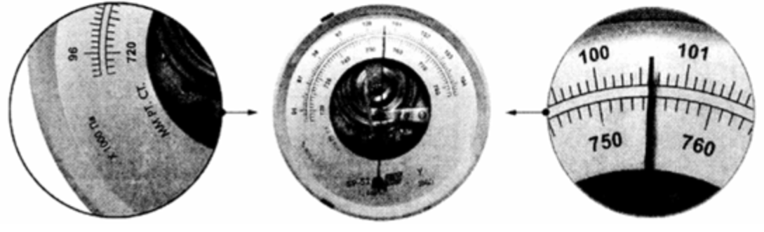 В паспорте барометра (см. рисунок) указано, что абсолютная погрешность прямого измерения давления составляет 3 мм рт. ст.