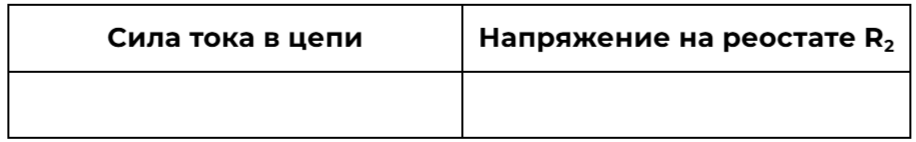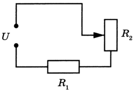 Резистор R1 и реостат R2 подключены последовательно к источнику напряжения U (см. рисунок). Как изменятся сила тока в цепи и напряжение на реостате R2, если увеличить сопротивление реостата?