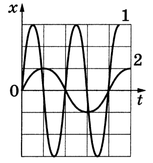 На рисунке представлены графики зависимости координат двух тел от времени. Чему равно отношение частот колебаний этих тел?