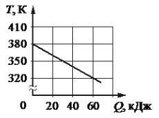 Твёрдое тело остывает. На рисунке изображён график зависимости температуры тела T от отданного им количества теплоты Q. Какое количество теплоты отдаёт тело, остывая на 30 К?