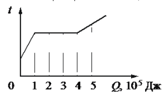 На рисунке показан график изменения температуры t вещества по мере поглощения им количества теплоты Q. Масса вещества - 0,4 кг. Первоначально вещество было в жидком состоянии. Какова удельная теплота парообразования вещества? Ответ дайте в кДж/кг.