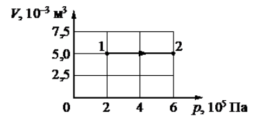 На рисунке показан график изменения состояния постоянной массы газа. В этом процессе газ получил количество теплоты, равное 3 кДж. На сколько изменилась его внутренняя энергия?