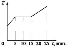 Для плавления куска льда при температуре его плавления требуется количество теплоты, равное 3 кДж. Этот кусок льда внесли в тёплое помещение. Зависимость температуры льда от времени представлена на рисунке. Определите среднюю тепловую мощность, подводимую к куску льда в процессе плавления.