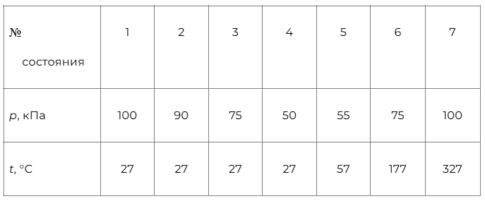 При изучении процессов, происходящих с гелием, ученик занёс в таблицу результаты измерения температуры и давления одного и того же количества газа в различных равновесных состояниях. Какие два из утверждений, приведённых ниже, соответствуют результатам этих опытов? Газ считать идеальным.