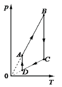 На рисунке показан график циклического процесса, проведённого с одноатомным идеальным газом, в координатах р-Т, где р - давление газа, Т - абсолютная температура газа. Количество вещества газа постоянно.