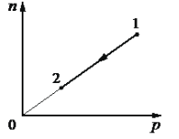 При переводе одноатомного идеального газа из состояния 1 в состояние 2 концентрация молекул n пропорциональна давлению р (см. рисунок). Масса газа в процессе остаётся постоянной.