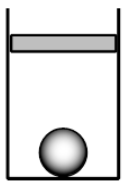 В цилиндрическом сосуде под поршнем находится газ. Поршень не закреплён и может перемещаться в сосуде без трения. На дне сосуда лежит стальной шарик (см. рисунок). Газ нагревают. Как изменятся в результате этого давление газа и действующая на шарик сила Архимеда? Атмосферное давление неизменно.
