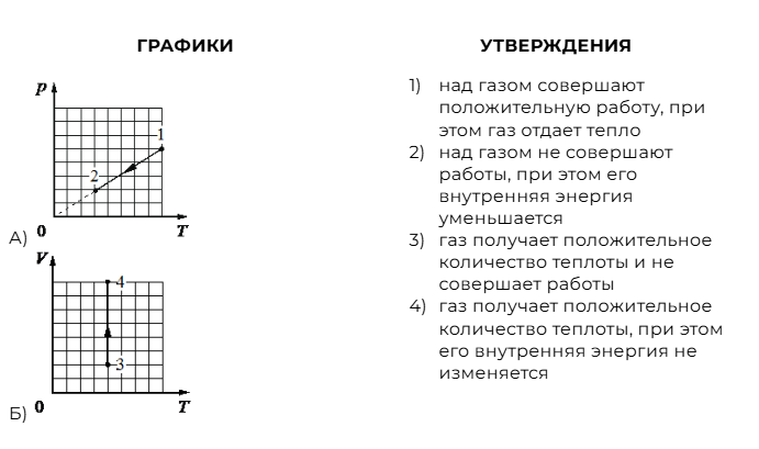 Установите соответствие между графиками и утверждениями, характеризующими изображённые на графиках процессы.