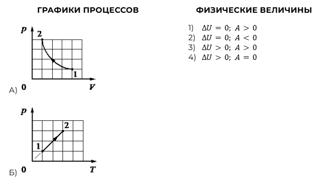 1 моль одноатомного идеального газа, и физическими величинами (ΔU - изменение внутренней энергии; А - работа газа), которые их характеризуют.
