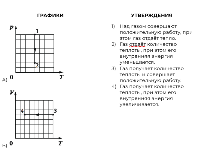 Установите соответствие между графиками и утверждениями, характеризующими изображённые на графиках процессы.