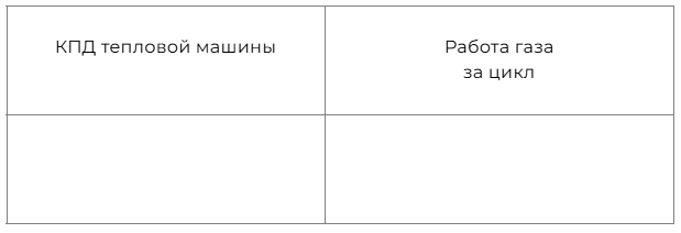 Тепловая машина работает по циклу Карно. Температуру нагревателя тепловой машины понизили, оставив температуру холодильника прежней. Количество теплоты, отданное газом холодильнику за цикл, не изменилось. Как изменились при этом КПД тепловой машины и работа газа за цикл?