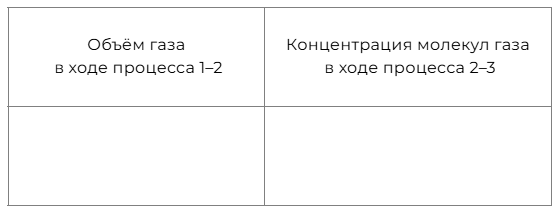 Как изменяются объём газа V в ходе процесса 1–2 и концентрация молекул газа n в ходе процесса 2–3? Масса газа остаётся постоянной.
