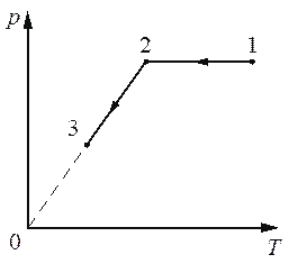 Один моль идеального газа участвует в процессе 1–2–3, график которого изображён на рисунке в координатах p–T, где p – давление газа, T – абсолютная температура газа.