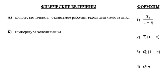 Температура нагревателя идеального теплового двигателя, работающего по циклу Карно, равна T1, а коэффициент полезного действия этого двигателя равен . За цикл рабочее тело двигателя получает от нагревателя количество теплоты Q1.