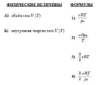 Установите соответствие между физическими величинами, характеризующими газ, и формулами, выражающими их зависимость от абсолютной температуры T газа (R - универсальная газовая постоянная).