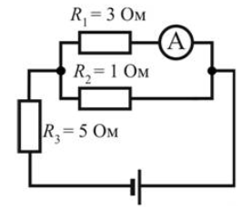 В цепи, изображённой на рисунке, амперметр показывает 1 А. Найдите напряжение на R₂. Амперметр считать идеальным.